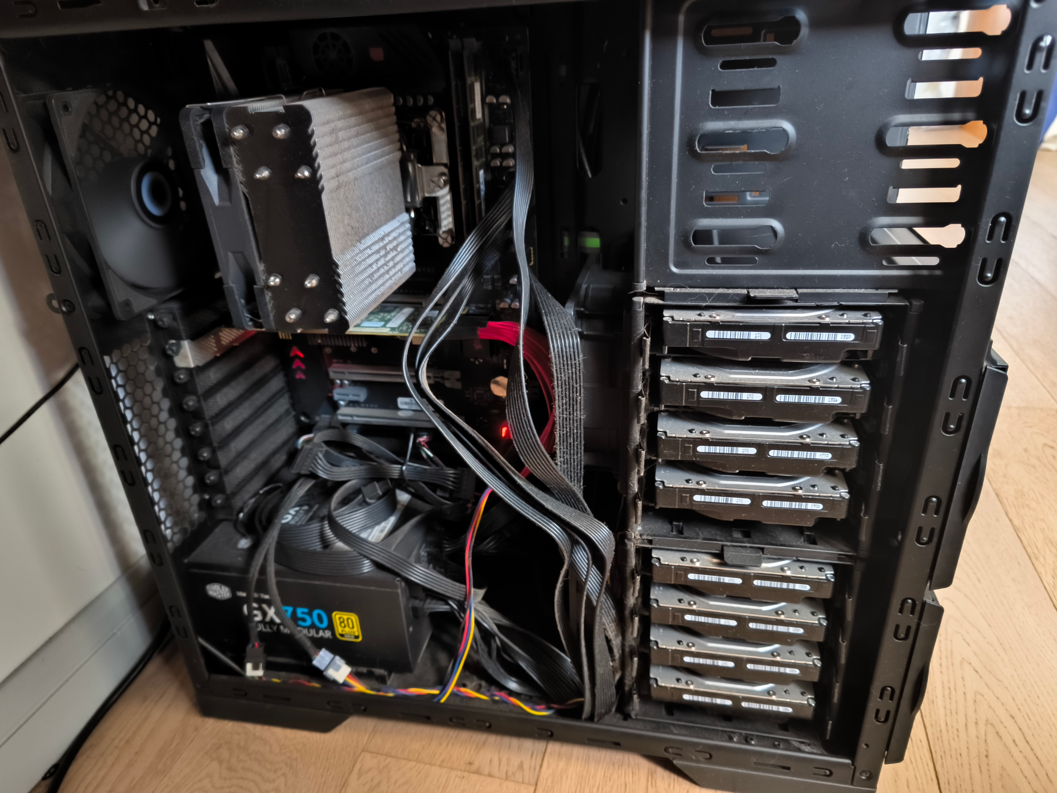 这台机器几乎全身都是二手硬件,硬盘甚至是服务器退役的 SAS 硬盘,除了硬件便宜几乎没有什么别的优点。