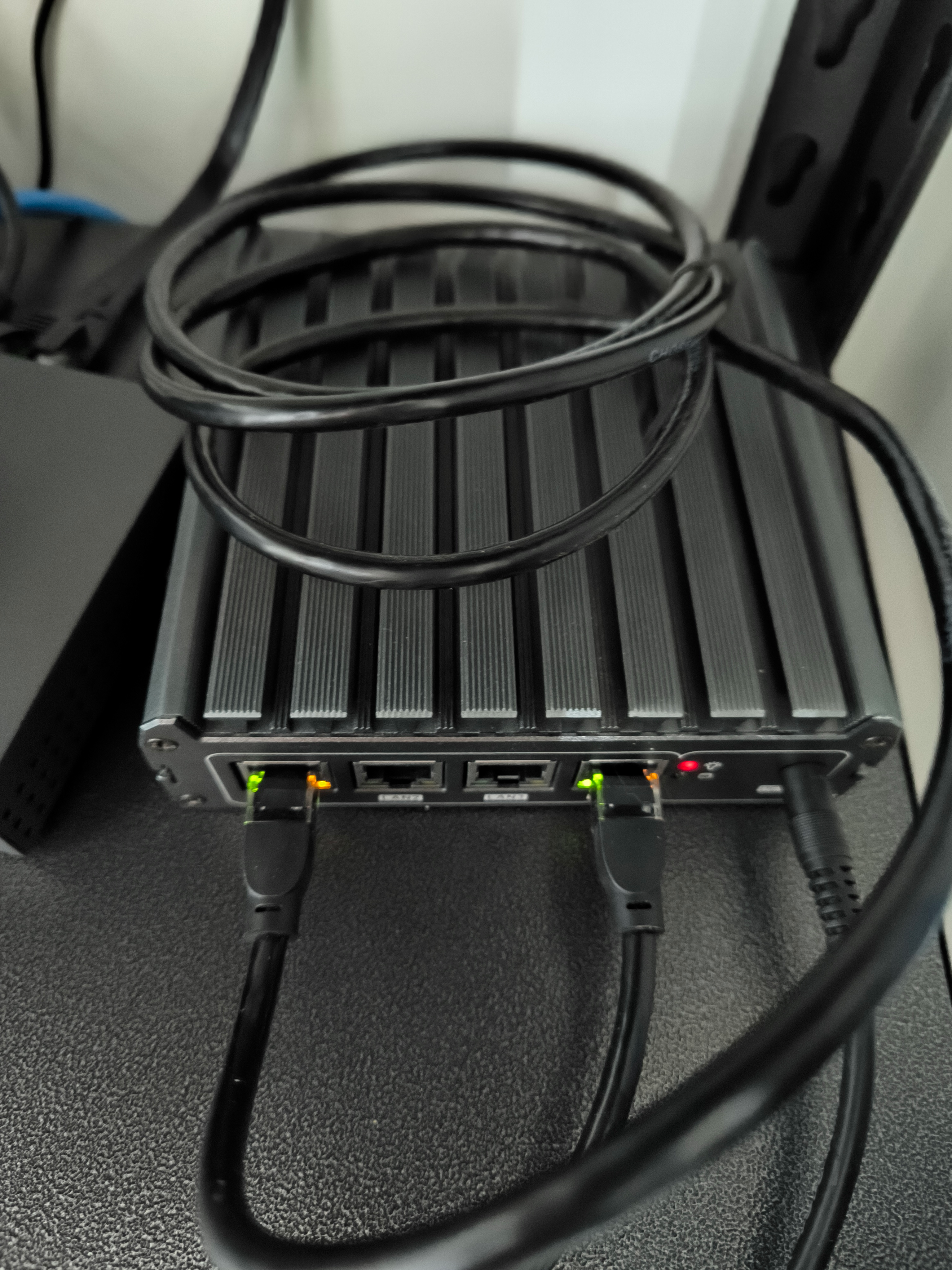 旁路由/旁路网关/单臂路由……一众叫法不一,这里还是不妨就用较为通用的俗称旁路由吧。这是一台前几年购买的 4 网口 J1900 CPU 的 x86 软路由小主机,运行着一些服务(后文细说,如果有的话)。