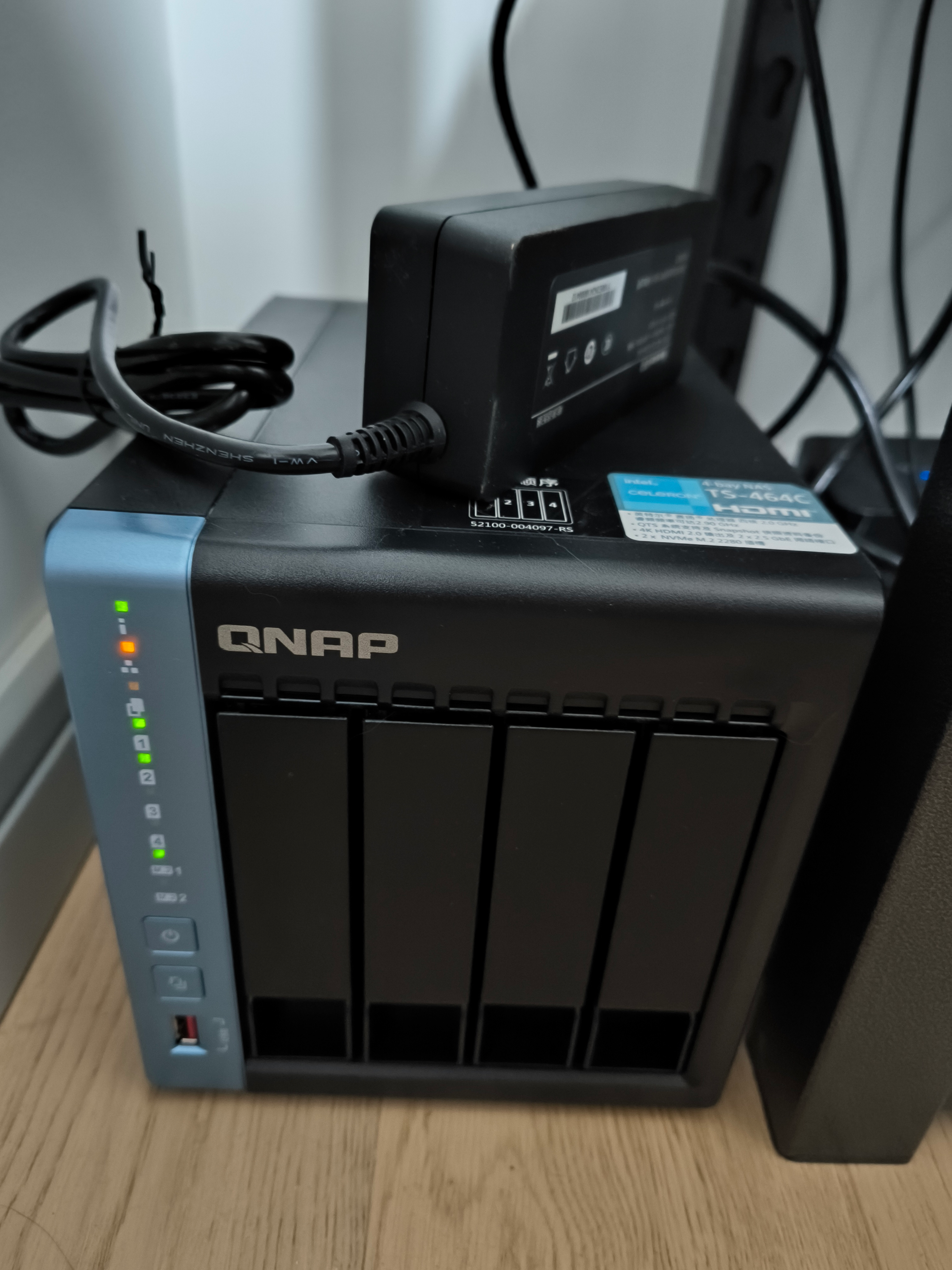 从先前的群晖 DS220+ 升级而来。四盘位目前只上了两个 16T 的硬盘组成 RAID 1,用于保存一些比较在乎的数据,例如照片备份、音乐库等,同样详情见后文。